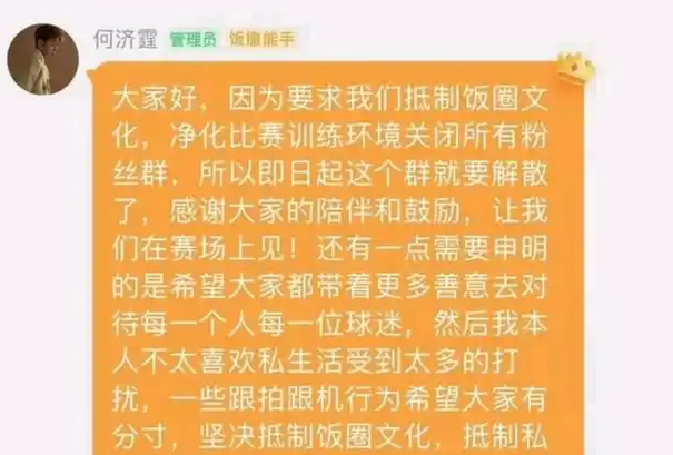 这场突如其来的"解散潮"背后,是体育界对饭圈文化的深度反思。2025年1月14日,国家体育总局召开了一场专题会议,将"饭圈"乱象治理列为当前的紧迫任务。实际上,早在2024年5月,体育总局就曾公开表态要严厉整治饭圈文化,强调其对运动员身心健康和体育事业发展的负面影响。然而,这些警告似乎并未完全奏效,饭圈文化在体育界仍然有愈演愈烈之势。